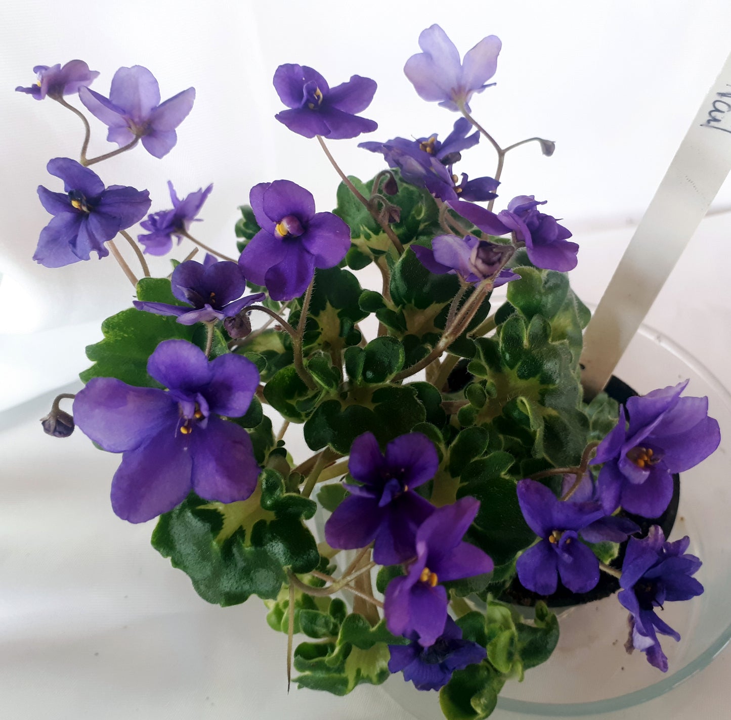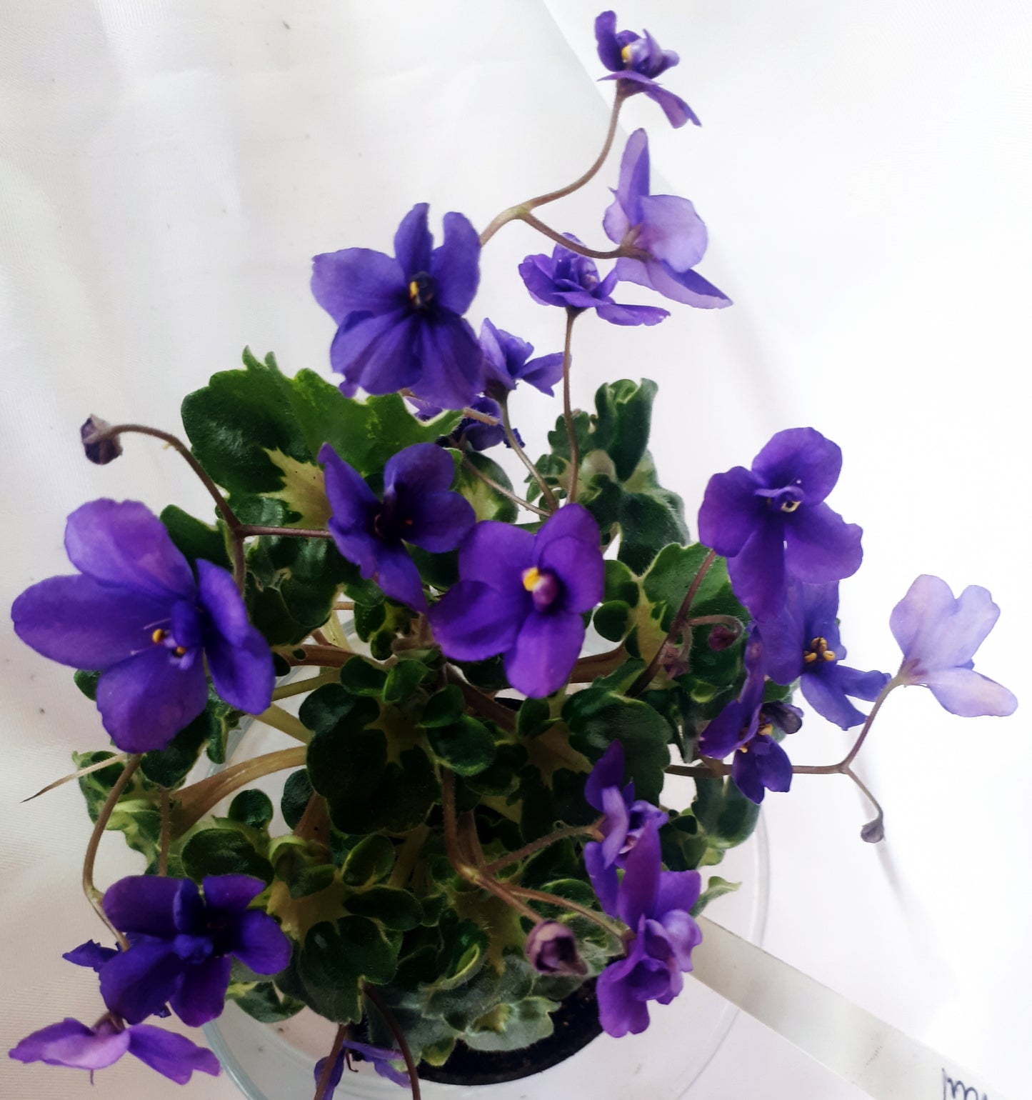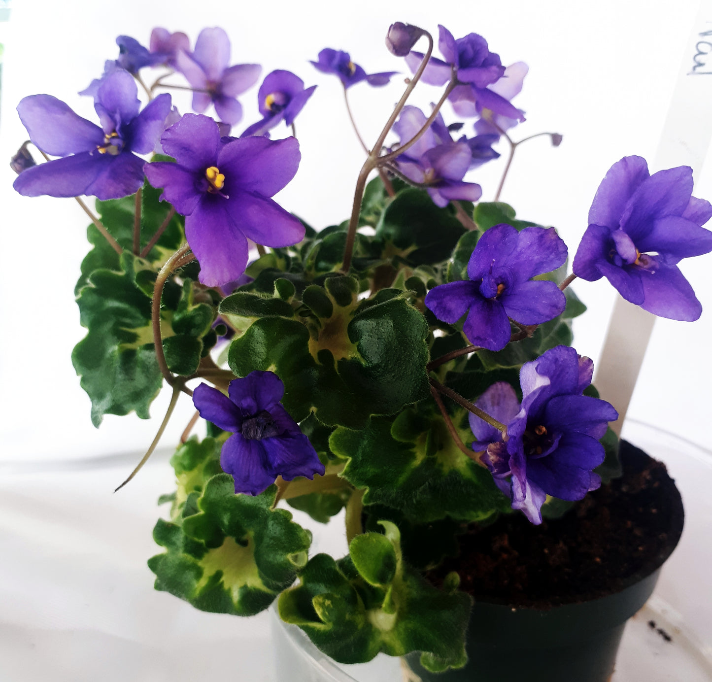 Biscayne Trail (Williams) Single/semidouble lavender blue. Champion variegated girl foliage. (SM)