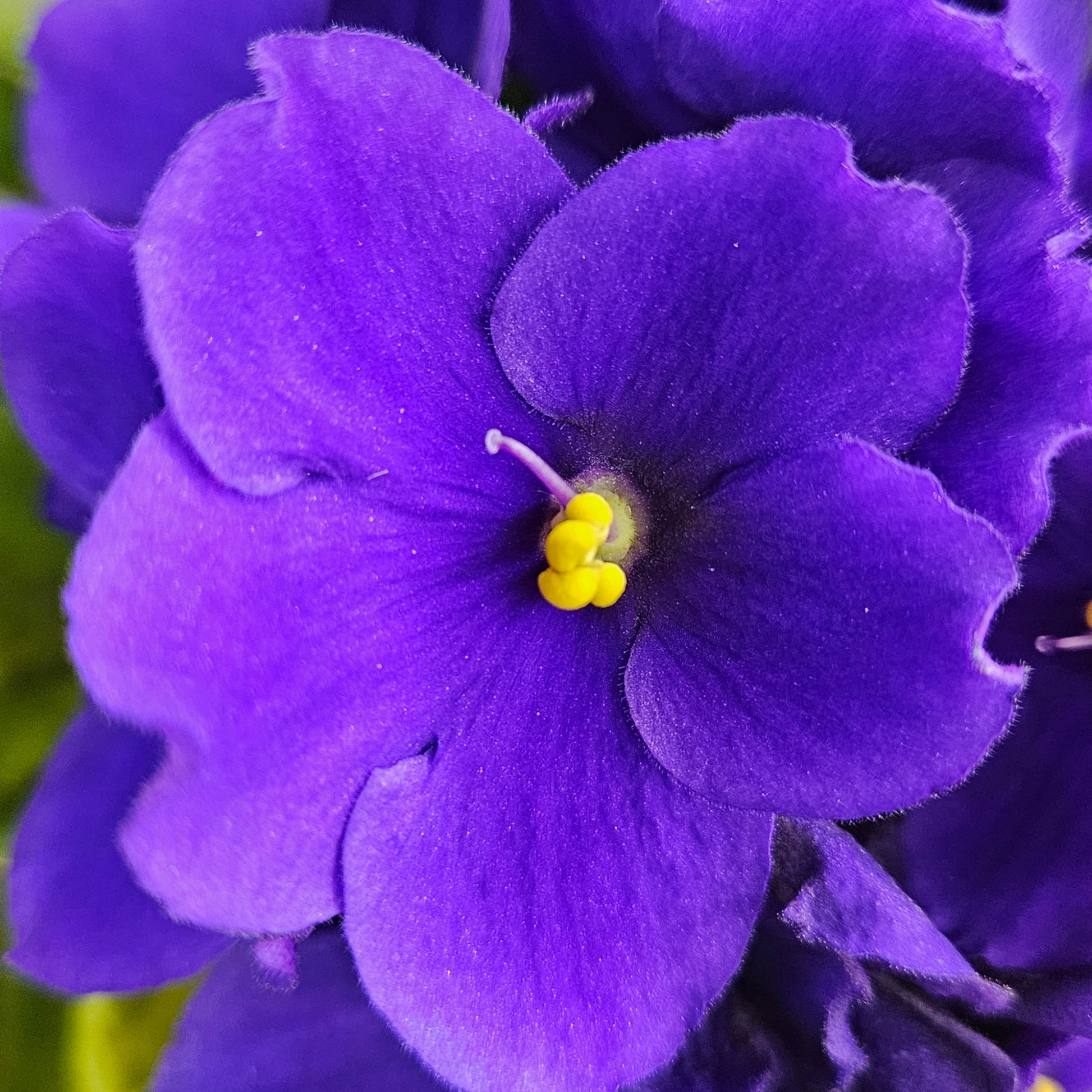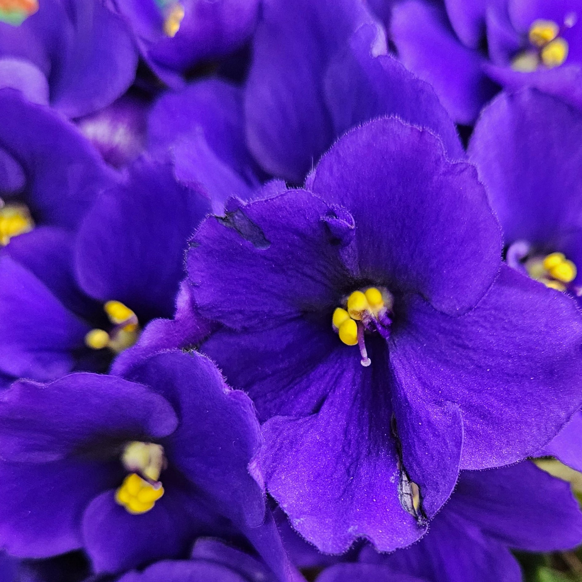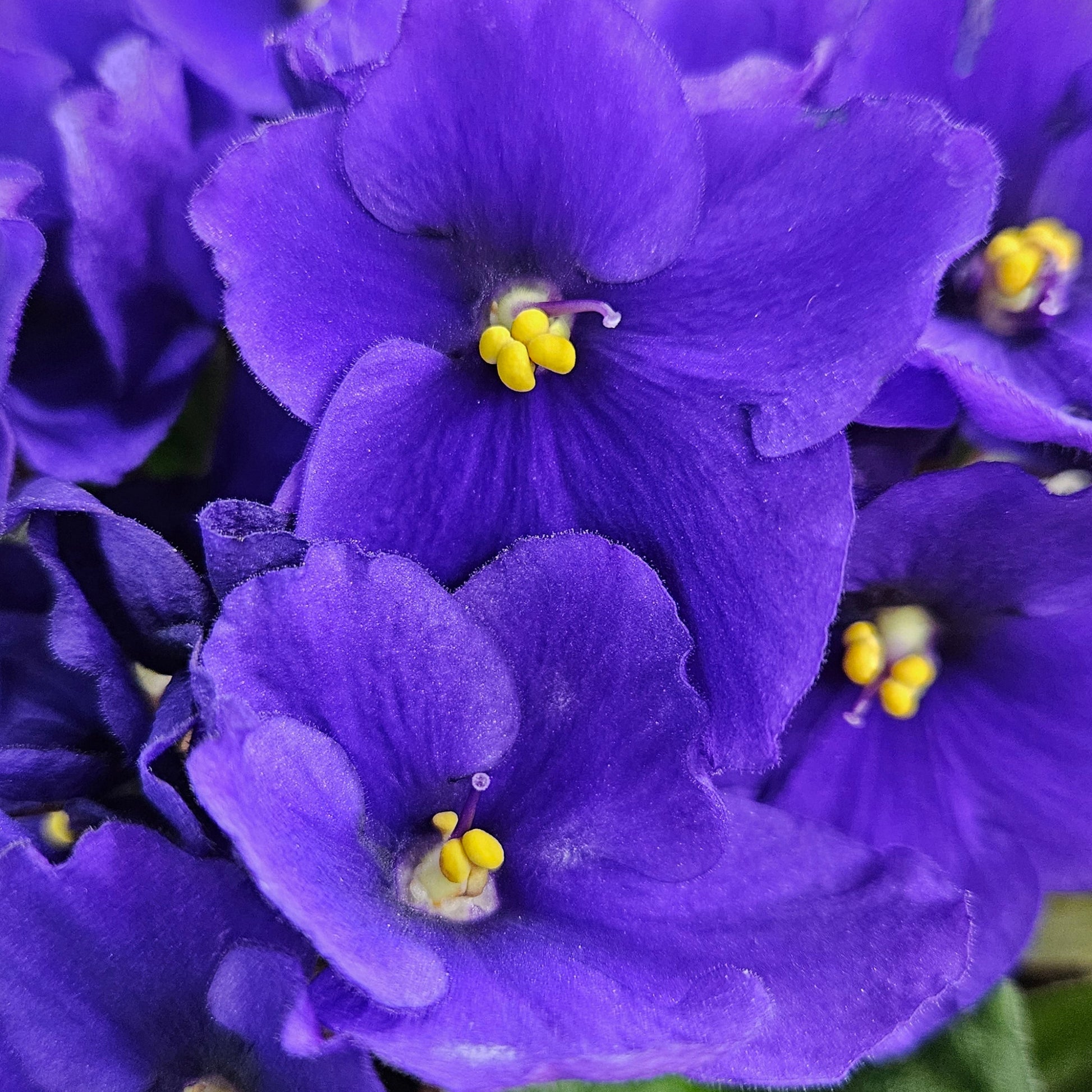 Blue Jeans Baby (8500) 11/09/1996 (S. Sorano) Semidouble medium blue pansy/thin white edge. Medium green, quilted. Semiminiature