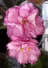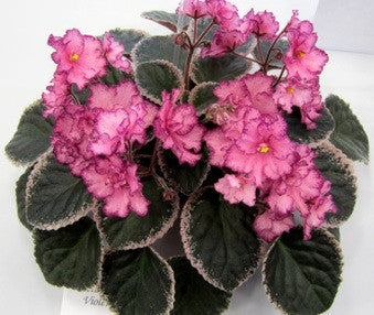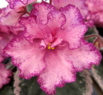 Buckeye Cranberry Sparkler (8745) 07/27/1998 (P. Hancock) Semidouble bright pink ruffled pansy/variable raspberry fantasy; raspberry edge. Variegated dark green, cream and pink, plain, glossy/red back. Large