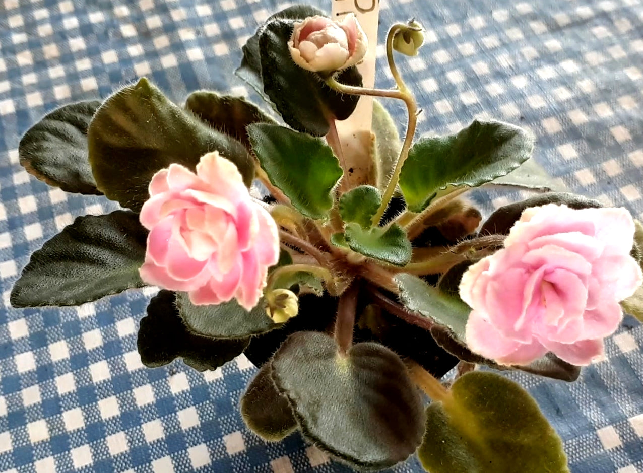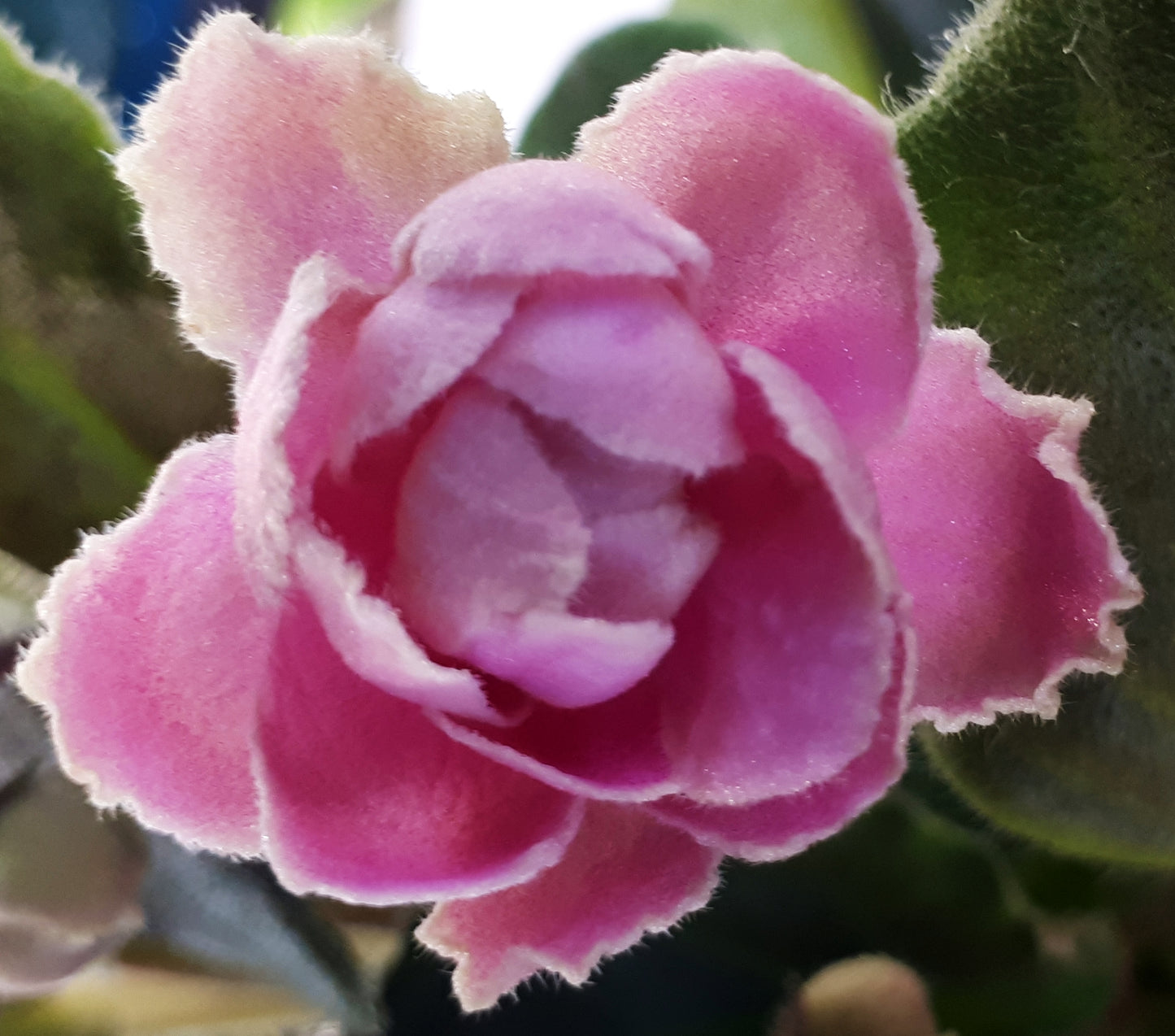 Harmony's Pinkstone lovely soft pink blooms with cream (tinged green), scalloped/frilled edges