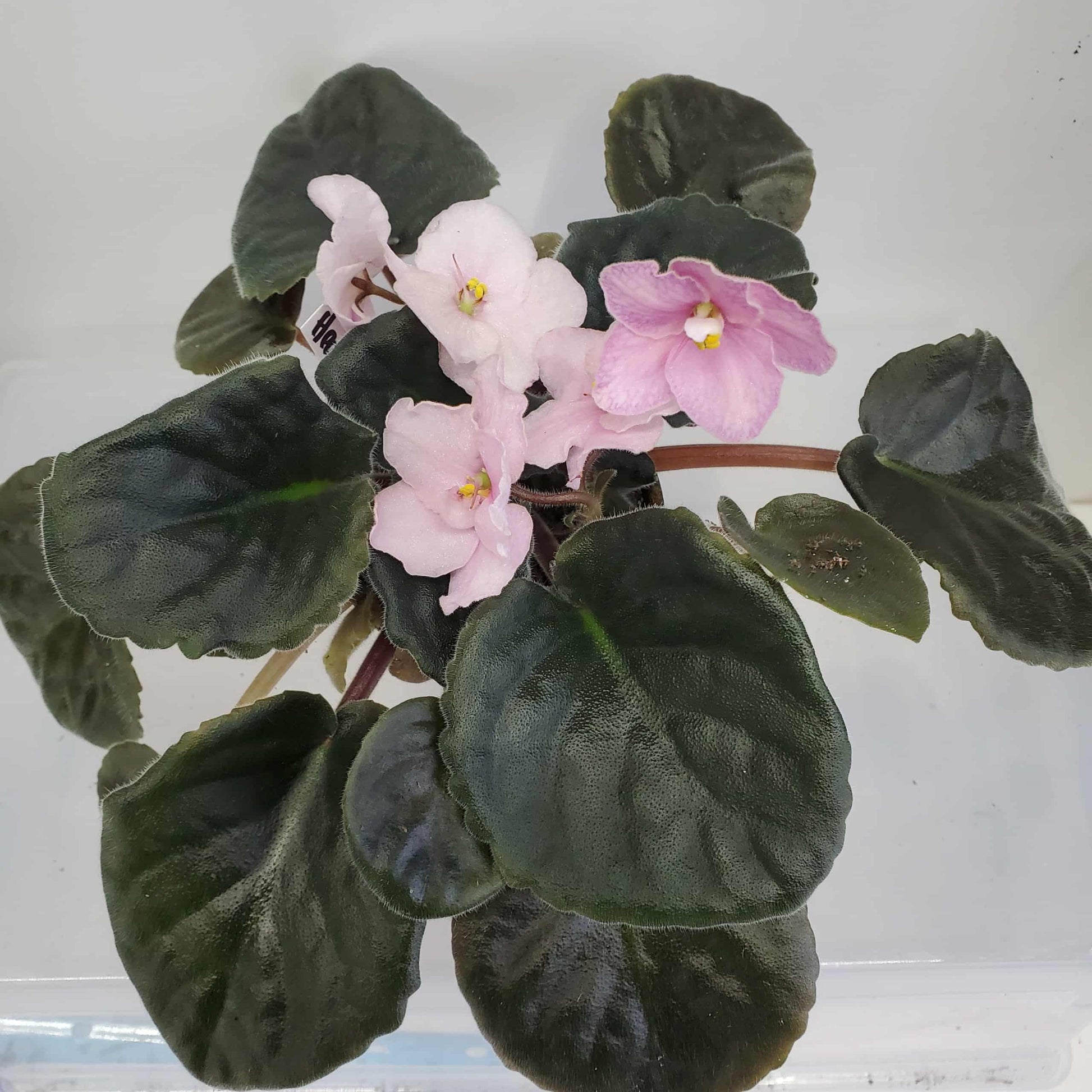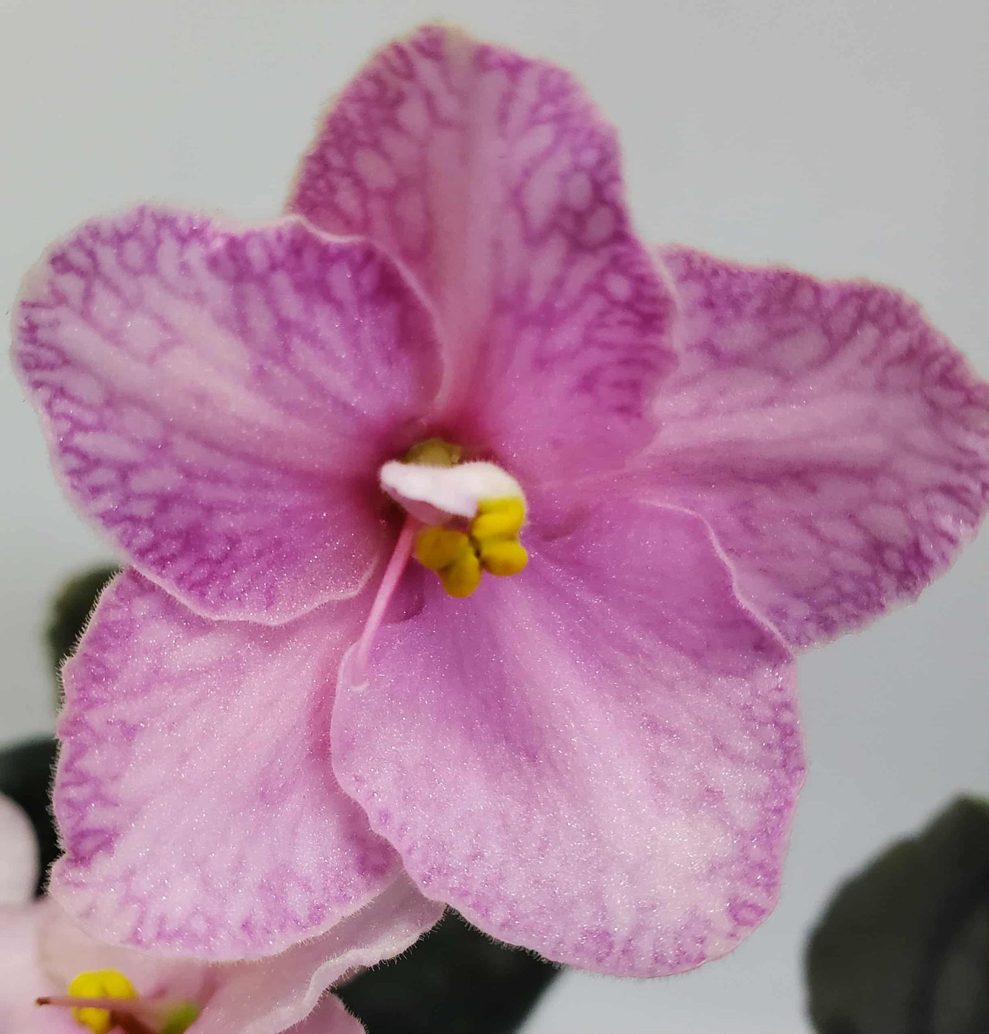 Heartland's Heirloom Lace (D. Martens) Dusty rose star/darker marking and lines, on upper petals/green overcast. Medium green. Standard