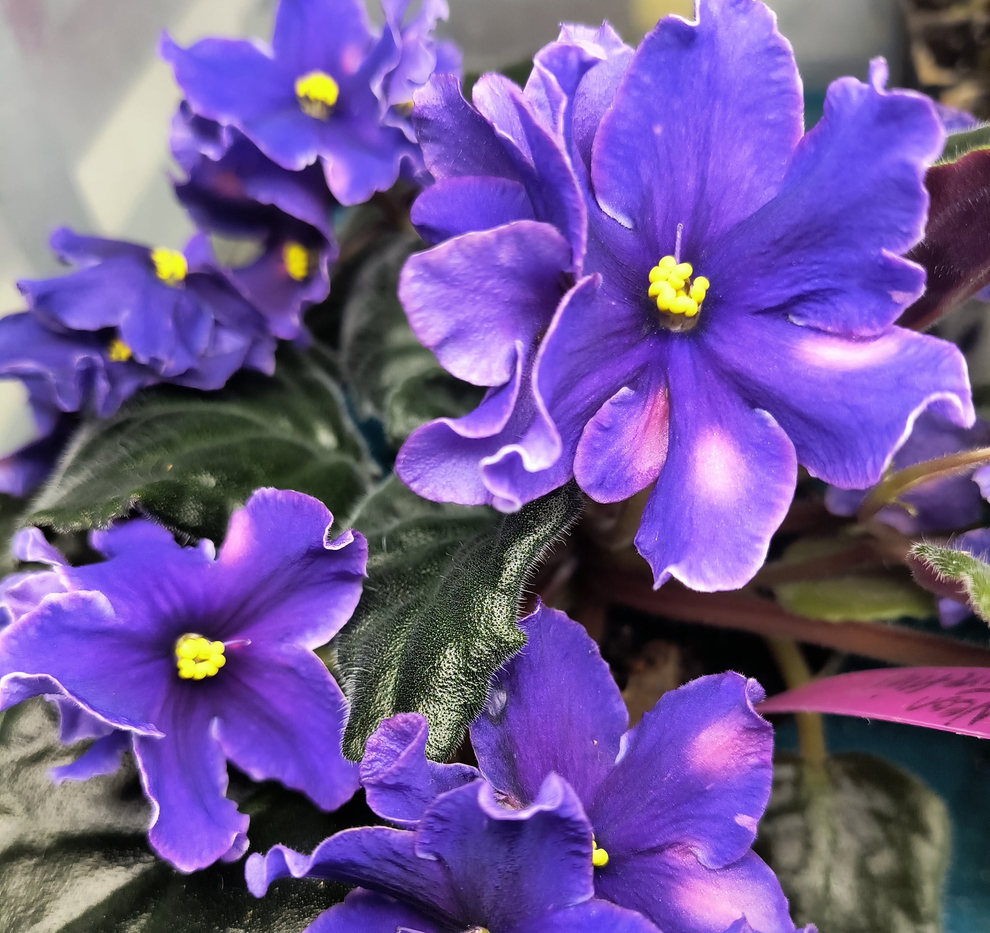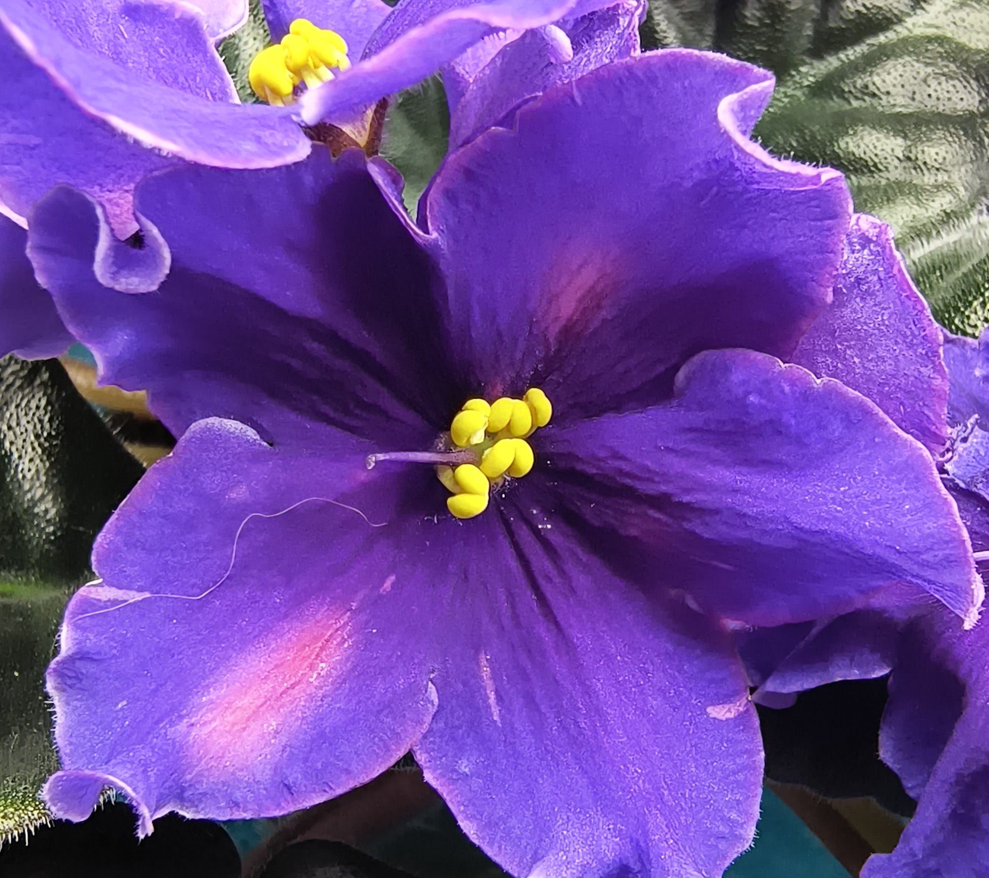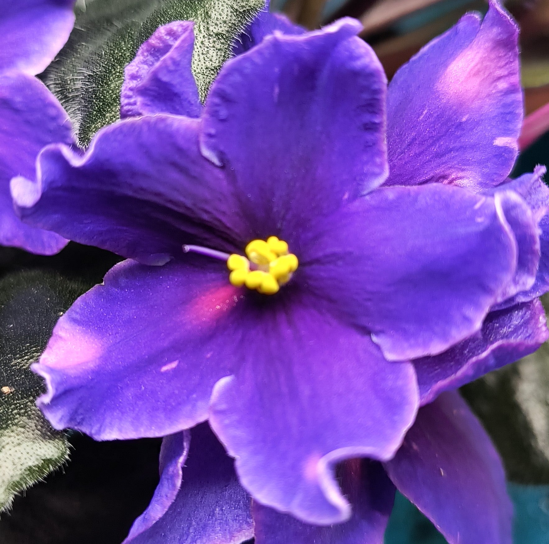 Neon Fireflies (9938) 03/22/2008 (Lyndon Lyon Greenhouses/P. Sorano) Single dark blue sticktite star/pink fantasy, white edge. Dark green, ovate, quilted/red back. Standard