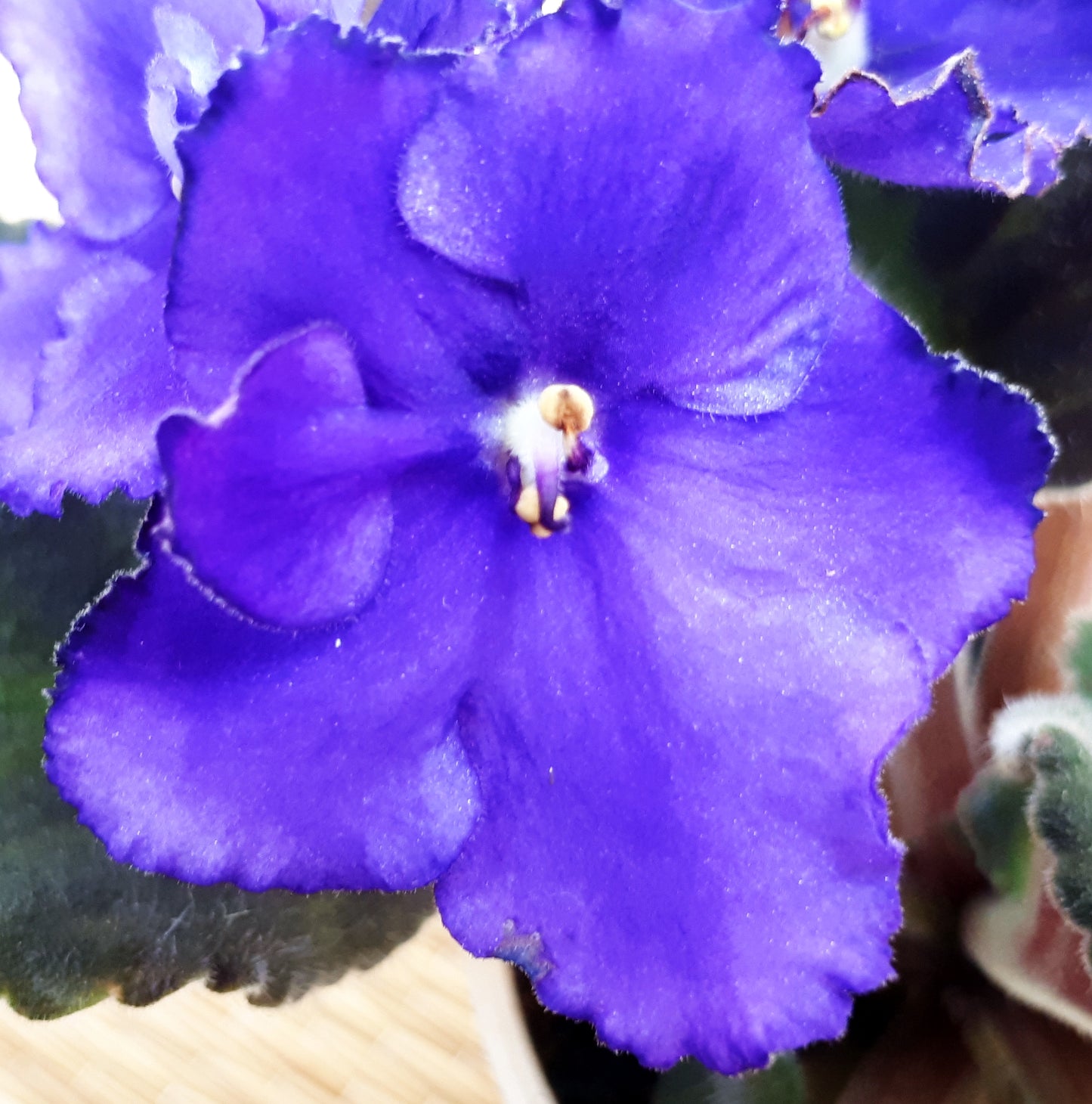 Queen Anne (8821) 06/26/1999 (N. Price) Semidouble purple ruffled pansy. Dark green, plain, quilted/red back. Standard