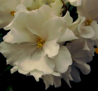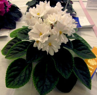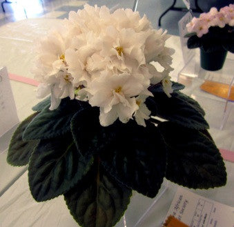 Sansoucy' Julie-Marie (7773) 08/10/1992 (P. Sansoucy) Semidouble white sticktite star. Medium green, plain, quilted, serrated. Large (CA 439, 1991)