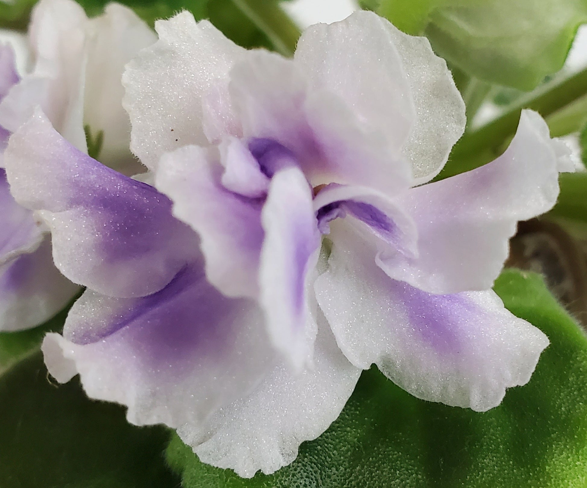 Silverglade Plums (9004) 03/07/2001 (S. Harrison) Semidouble lavender frilled/white eye, mauve patches. Medium green, plain, quilted. Standard