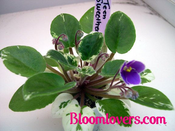 Teen Sweetheart (7867) 05/13/93 (H. Pittman) Semidouble medium blue/white edge. Variegated medium green and white, plain. Semiminiature